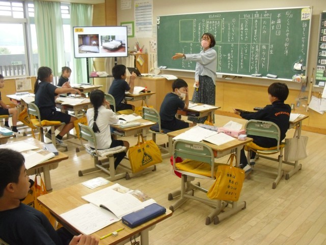 「くらしの中の和と洋」の文章構成を学習しながら、実際の生活の中にはどのような例があるかを話し合っていました。