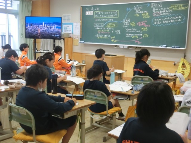 5Aの道徳では、「森の絵」という教材を通して、友達と意見交流していました。クラスで一つのことをやりきるときに大切なことは何か、自分の考えをふり返りに書きました。