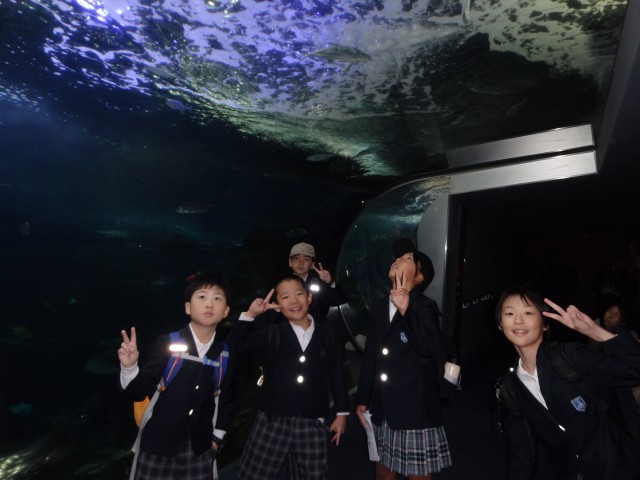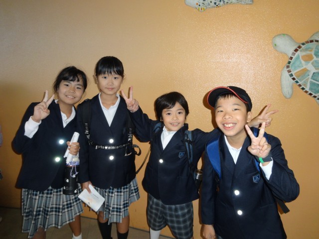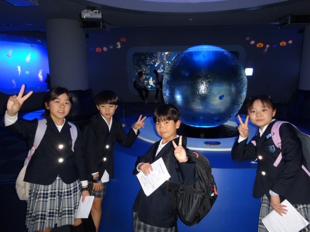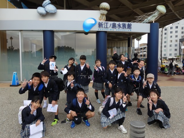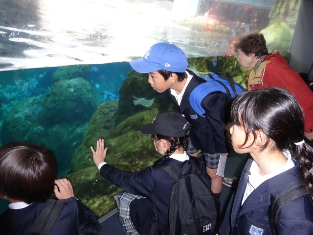 4年生は、初志部修学旅行として、新江ノ島水族館に行ってきました。班ごとにまわる順序の計画を立てたり、バスの中でのレクリェーションを準備したりして出かけました。大きな水槽で泳ぐ魚たちや、珍しい海の生き物を見たり、ネコザメやヒトデなどを触れるコーナーを楽しんだりと、仲良く、楽しく班行動をすることができました。初志部のよい思い出となりました。