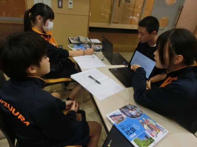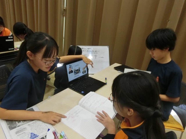 本日、本校の特色の一つである異学年交流を社会科の授業で行いました。8年生が6年生に「参勤交代の時代」について教えました。動画や映像を工夫しながら、分かりやすく丁寧に説明する姿が立派でした。6年生も真剣に聞き入り、楽しく学びを深めていました。