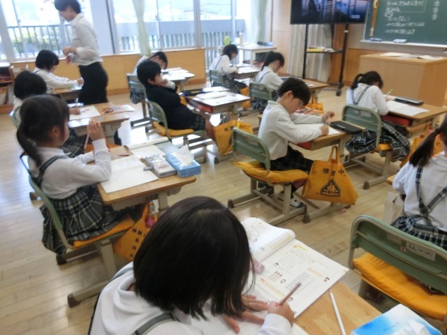 2Aの算数では、7の段の九九の学習をしました。チョコに見立てて楽しく考えながら、ノートに自分の考えを丁寧に書いていました。