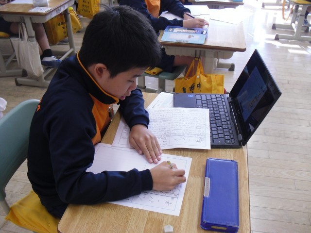 4Aの国語では、説明文の学習のまとめとして、教材に関連した事柄を調べた結果を「和と洋の新聞」としてまとめていました。