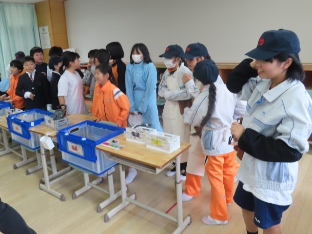 普段は見られない、本物の作業服や部品に興味津々でした。