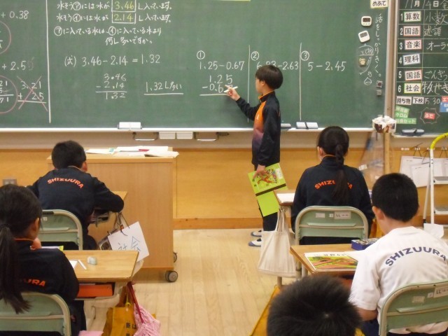 4Aの算数では、小数の引き算の計算について学習していました。