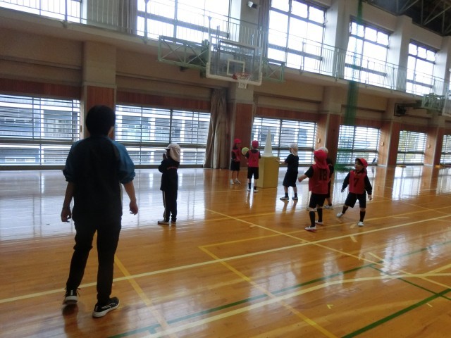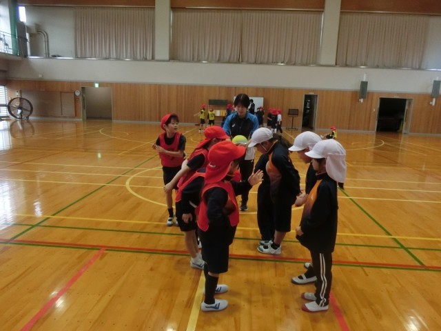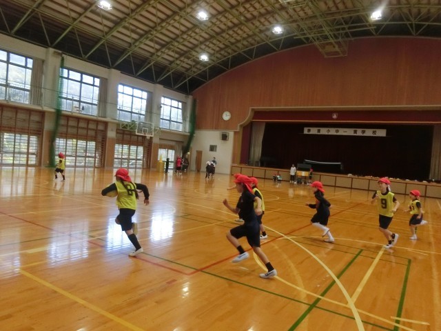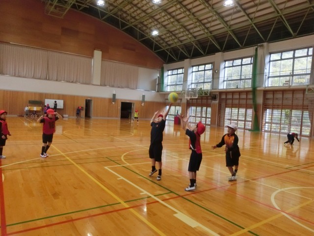 1・2年の体育では、シュートゲームを行っていました。子供たちは、お互いに声を掛け合いながら、協力してゲームを進め、楽しそうにシュートを決めていました。明るい笑顔がいっぱいの時間でした。