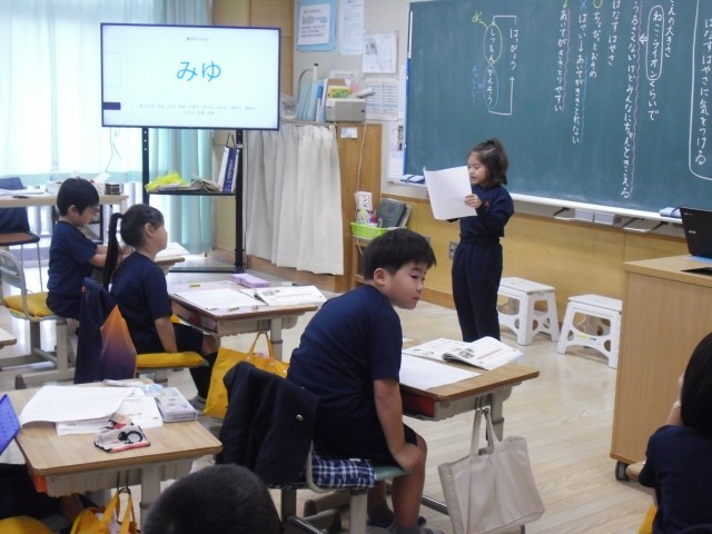 この時間には、「自分の好きな教科」について、理由を述べながら皆の前で発表しました。