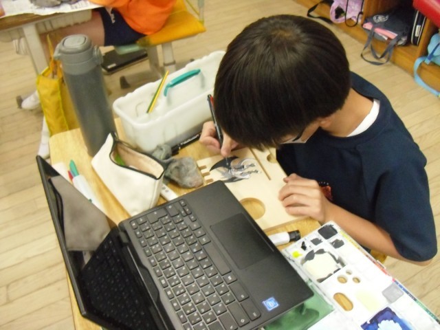 6Aの図工では「時計付黒板ボード」の制作をしています。