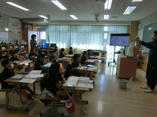 1年生の算数では、“くらべてみよう”の学習に取り組んでいました。形のちがう入れ物を使って水のかさを比べる活動では、「どうやったらうまく比べられるかな?」と、子供たちが目を輝かせて一生懸命考える姿が見られました。ノートの書き方もだんだん上手になり、学習の積み重ねがしっかりと表れていました。