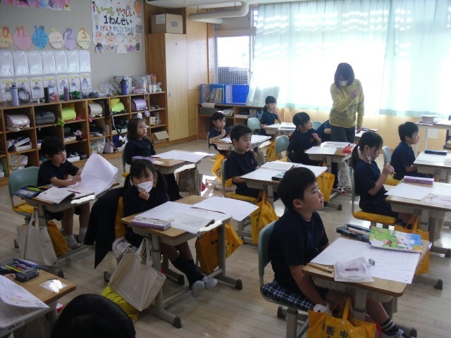 1Aの国語では、「おもいだしてかこう」の単元で、作文を書く学習をしています。