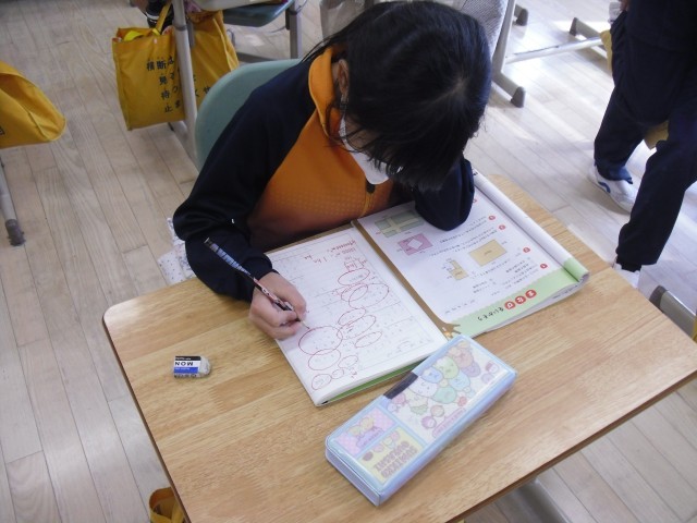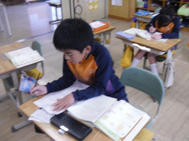 4Aの算数では、単元のまとめとして、練習問題に挑戦していました。