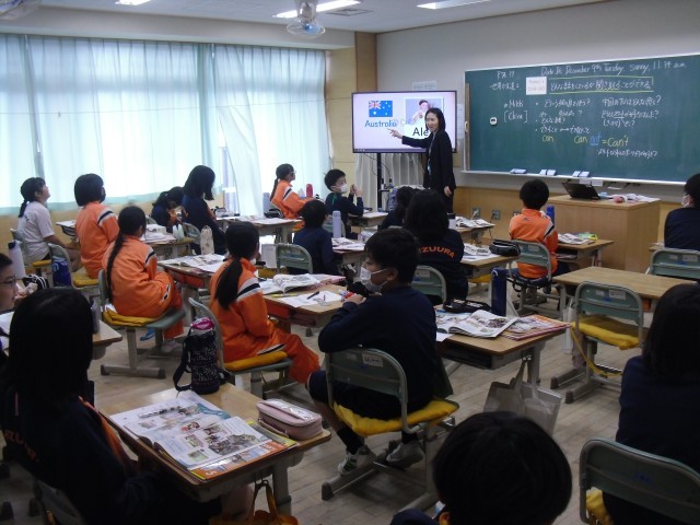 5Aから元気な声が聞こえてきたので行ってみると、元気よく英語を話していました。