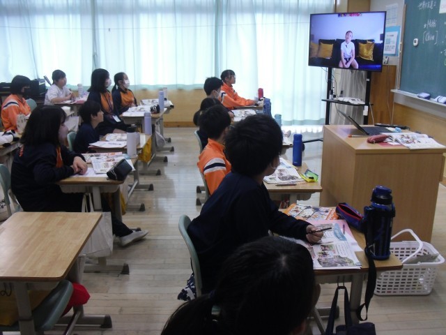 ビデオを見て、英語を聞き取り、質問に答えていました。