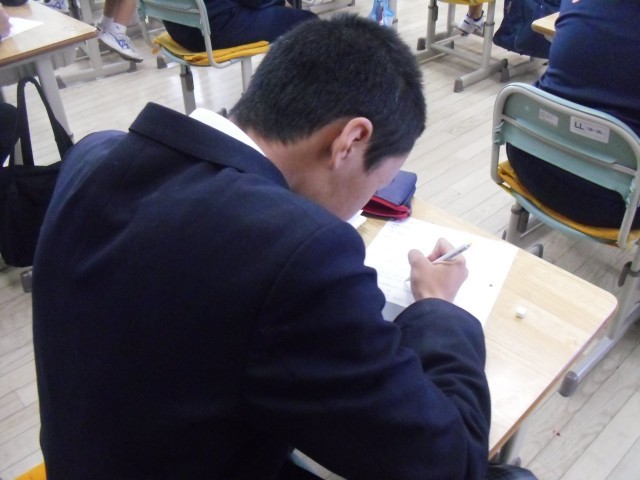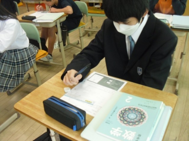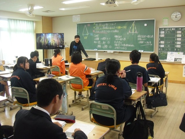 8Aの数学では、三角形の性質について、証明問題を解いていました。