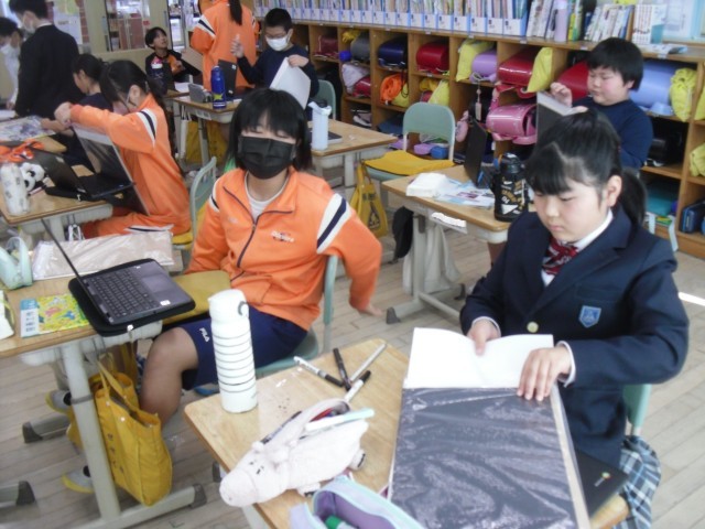 その後、今回木版画の題材が「自画像」であるので、クロームブックで自分の顔の写真を撮りました。