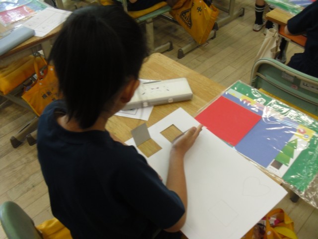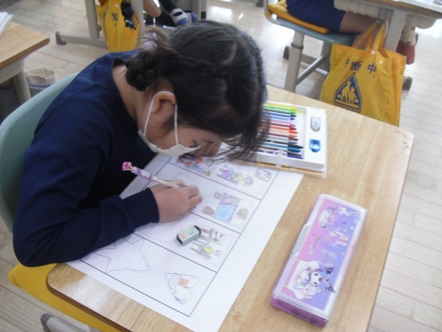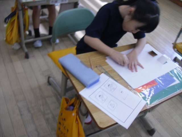 2Aの図工では、「まどをあけたら」の制作を始めました。