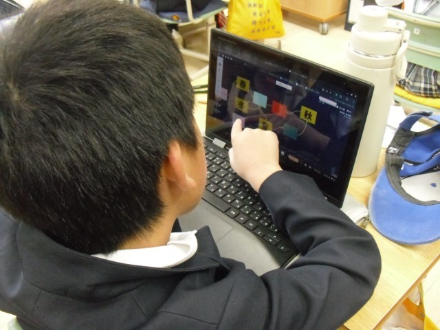 4Aの理科では、これまでの学習をもとにして、動物や植物が「1年間どうすごしているのか」について、クロームブックを使って、「ロイロノート」を使ってまとめていました。