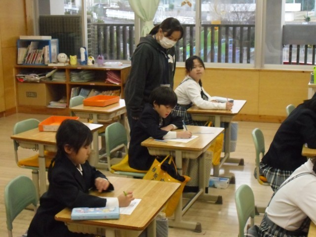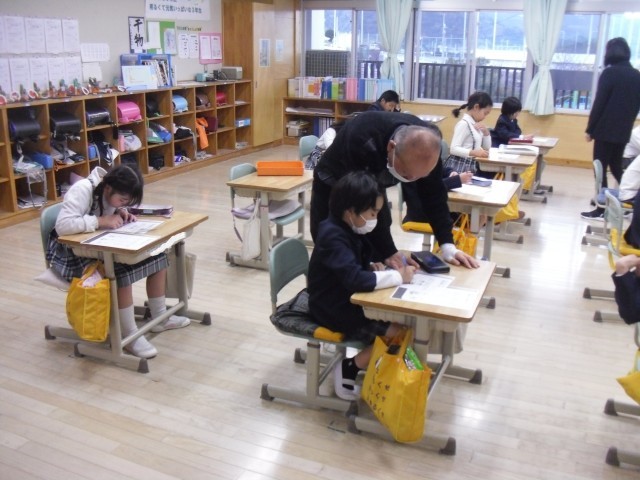 今日は、2年生と3年生の放課後学習支援「黒潮塾」「とびうお塾」が行われ、学習ボランティアの先生が来校しました。