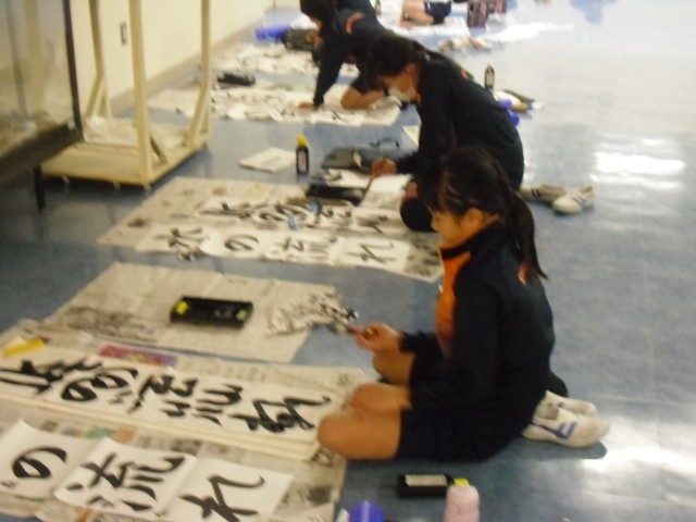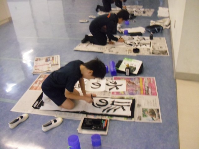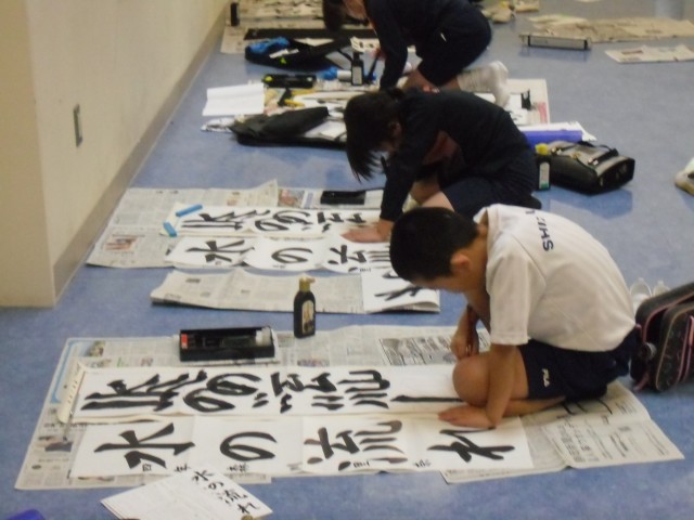 今日は、練習シートを使って、今年の課題字「水の流れ」を試し書きしました。