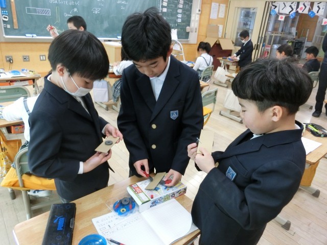 3Aの理科では、「じしゃくのふしぎ」の学習に取り組みました。子供たちは、磁石の力は、磁石につかないものが間に入ってもはたらくのか、実験しながら確かめていました。、釘やさまざまな形の磁石を使って、楽しそうに声を上げながら学習を進めていました。