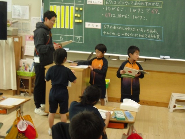 1Aの算数では、2桁の数の表し方について学習をしています。
