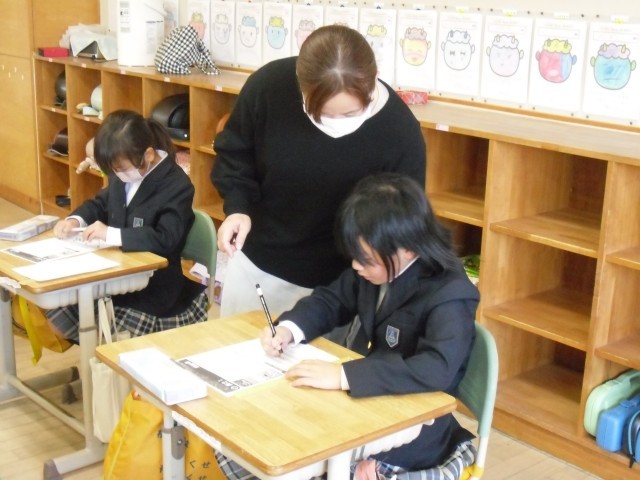 2年生と3年生は、算数の学習に取り組んでいますが、苦手なところや分からないところを質問し、できるようになると嬉しそうにしていました。