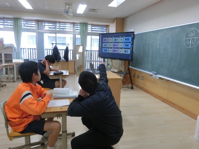 中Cの数学の授業では、速さ・道のり・時間の関係について、理解を深める学習を行いました。公式をもとにしながら、さまざまな問題に取り組み、真剣な表情で一つ一つの計算を考える姿が見られました。