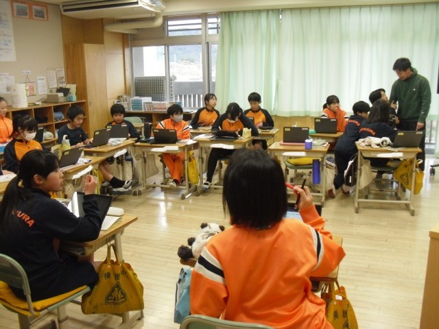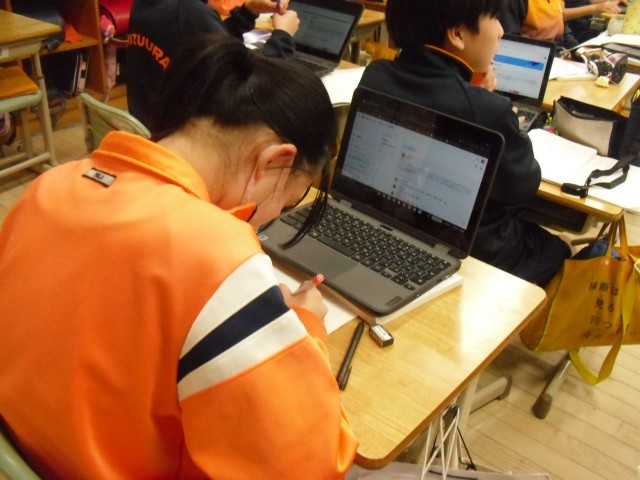 教材文として提示された文章から、キーワードになりそうな語句を選び、本当にそれでいいかを話合った後、キーワードを使って本文に沿った短い文を作ってみました。