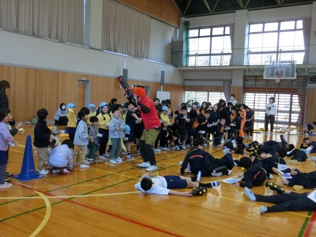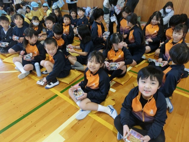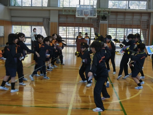 初志部で豆まき集会を行いました。4年生が中心となって企画・運営を担当し、連携している保育園の子供たちも参加してくれました。集会では、節分についての○×クイズや「おにさんが転んだ」を行い、会場は笑顔と歓声でいっぱいになりました。いよいよ豆まきが始まると、さまざまな鬼が登場し、子供たちは元気いっぱいに豆をまいて退治しました。最後には、鬼のボスも現れましたが、みんなの力を合わせたパワーで見事にやっつけることができました。異年齢での交流を通して、楽しく節分の行事に親しむ、心温まるひとときとなりました。