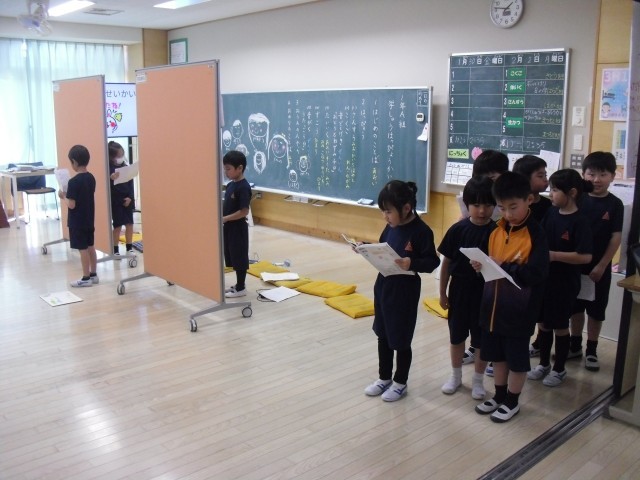 1Aは授業参観で学習発表会を行いました。