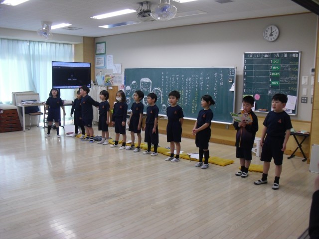 この1年間で学んだことやできるようになったことを、それぞれが選んで、お家の人の前で披露しました。