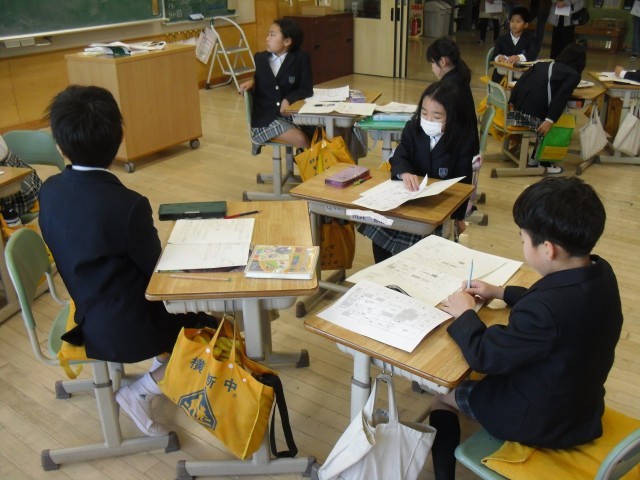 3Aの社会科では、「学校にある防災体制」について資料を基に確かめながら話合いを進めました。