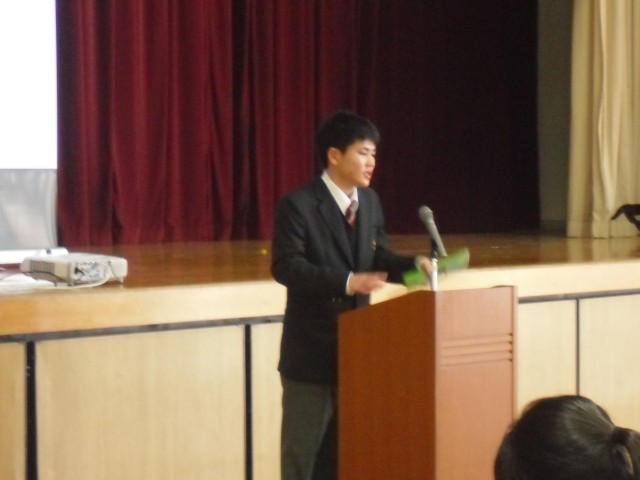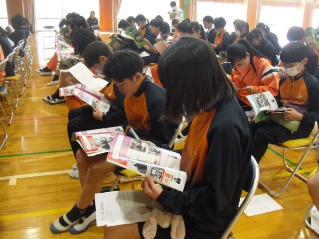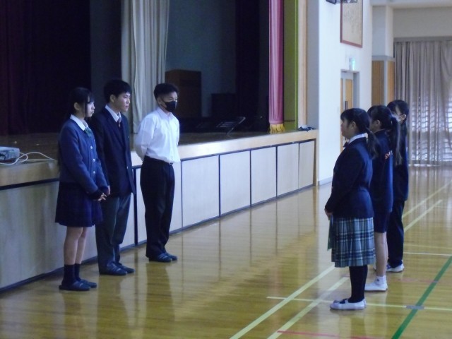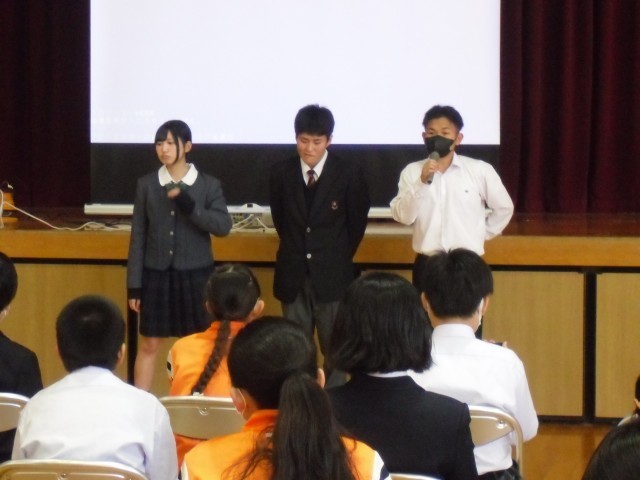 5年生~8年生の子供たちに対し、高校生活のことや自分の進路決定、将来のこと、小中一貫学校時代に何をすべきか等について、自分の経験を基にした話を伺いました。