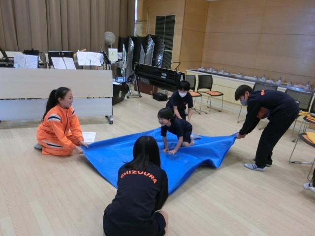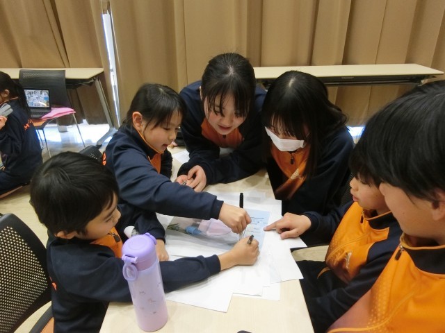 6Aは、総合的な学習の時間に取り組んできた「防災」についての学習のまとめとして、1年生を対象に発表を行いました。地震や津波が起こったときに大切な行動や命を守るための約束について、クイズやイラストを用いて分かりやすく説明しました。また、実際に体を動かして学べる体験コーナーも設け、1年生は楽しみながら防災について理解を深めることができました。発表した6年生にとっても、学んだことを下級生に伝えることで、防災への意識をより高める貴重な学びの機会となりました。