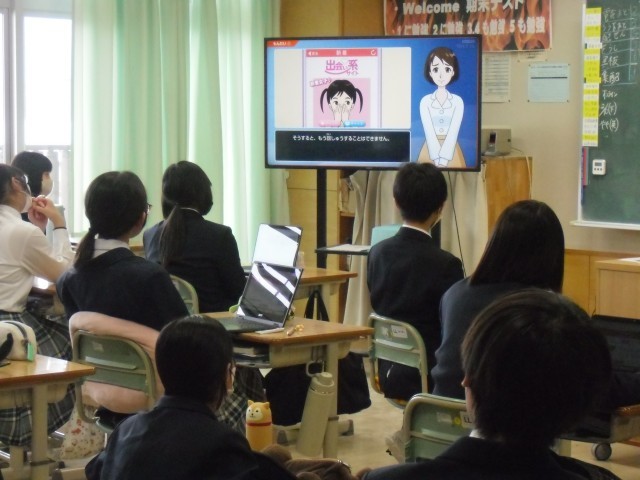 今回はSNSの危険性を扱っ動画題材を見て学習しました。動画の視聴後には、クイズ形式で復習をしました。