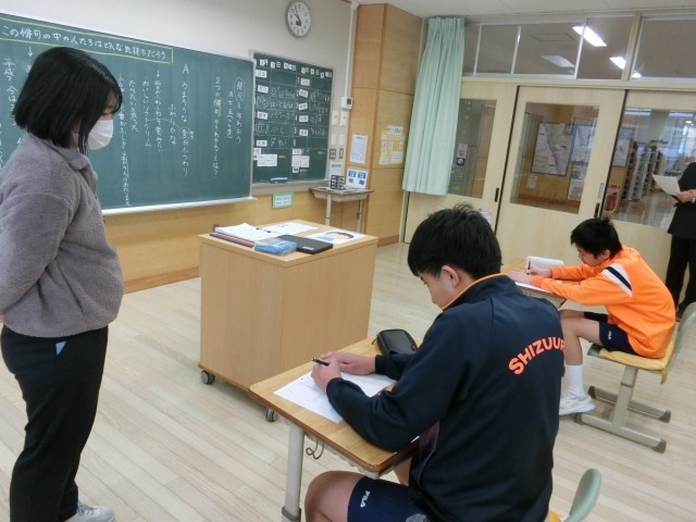 中Cの国語では、二つの俳句を題材に、作者の気持ちを読み取る学習に取り組みました。わずか十七音の中に込められた言葉に注目し、季語や表現の工夫から情景を具体的に思い描きながら、作者の心情について考えました。