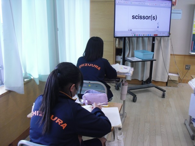 7Aの英語の授業と参観に行くと、ちょうど新出単語の学習をしているところでした。