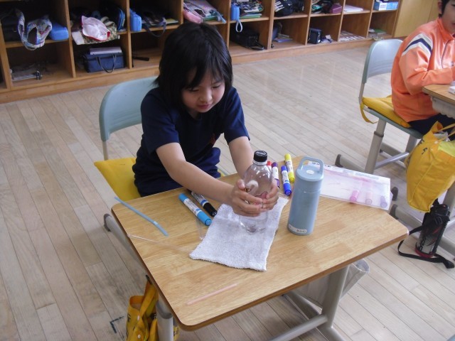 3Aの図工では、ペットボトルとストローを使って「浮沈子づくり」に挑戦していました。