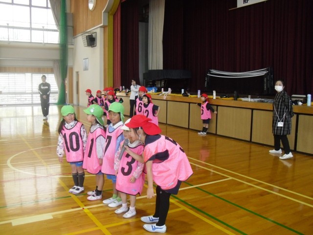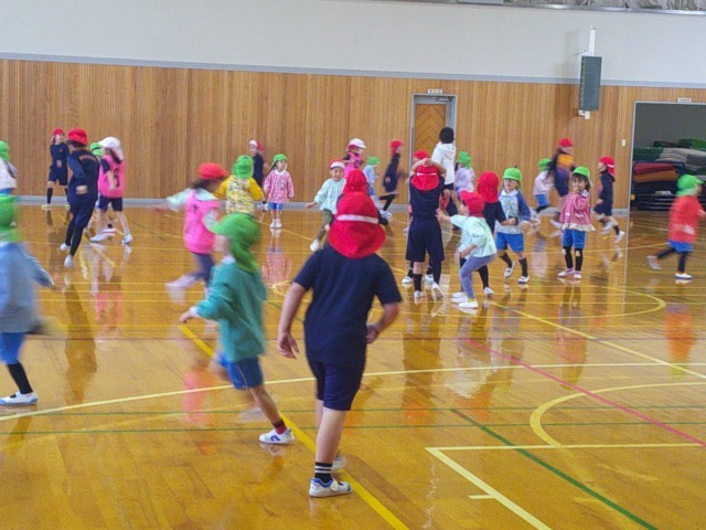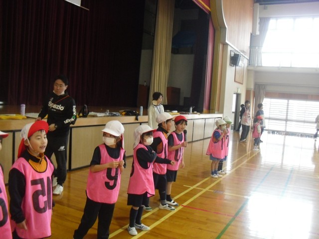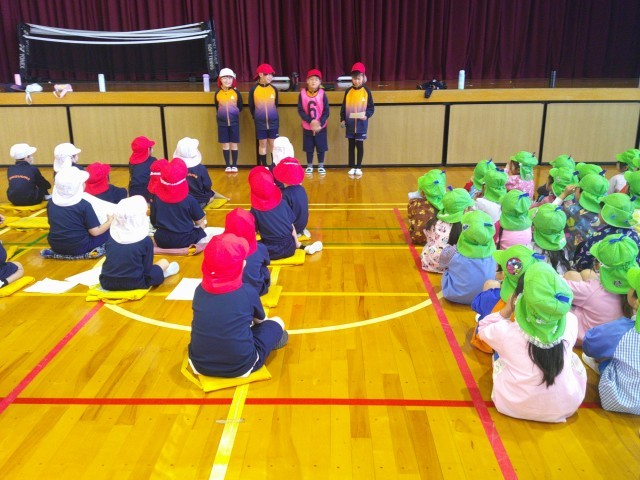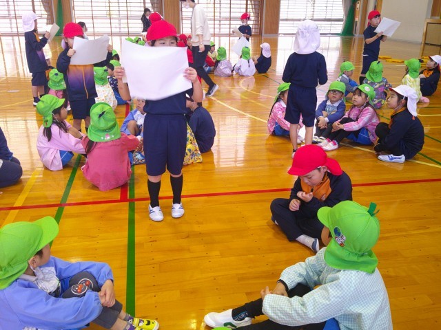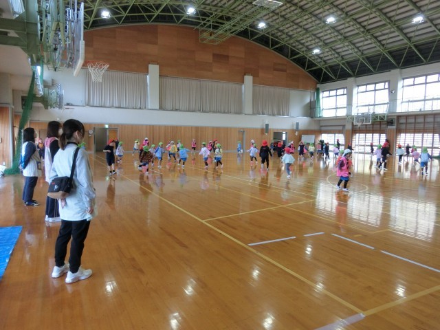 1・2年生が、幼稚園・保育園の園児のみなさんをお招きし、「いっしょに遊ぶ会」を行いました。はじめに1年生が、学校の様子を紹介し、その後は2年生を中心に「バナナ鬼」を楽しみました。体育館には元気な声が広がり、たくさん走って笑顔あふれるひとときとなりました。「楽しかった!」と笑顔で帰っていく園児のみなさんの姿に、1・2年生もほっとした様子で、うれしそうな表情を見せていました。心あたたまる交流の時間となりました。