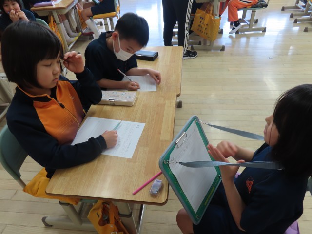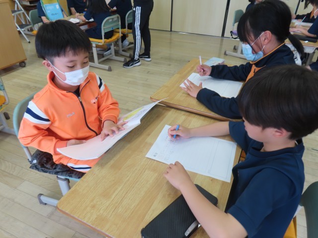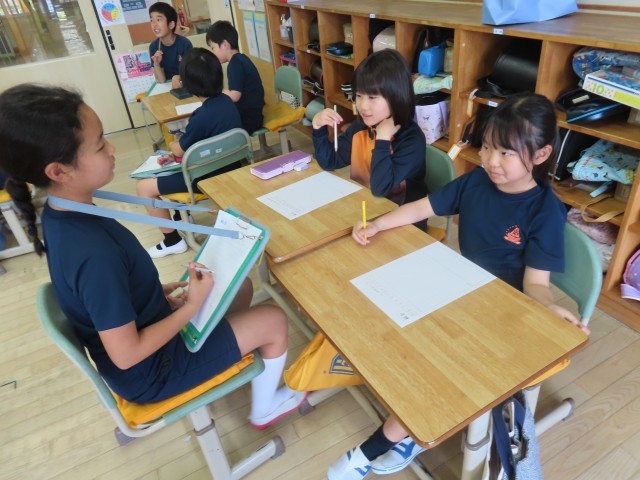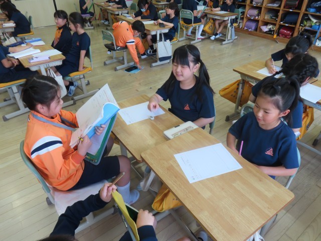 3年生は総合的な学習の時間は初めてです。4年生が去年1年間で学習したことを3年生に伝えていました。