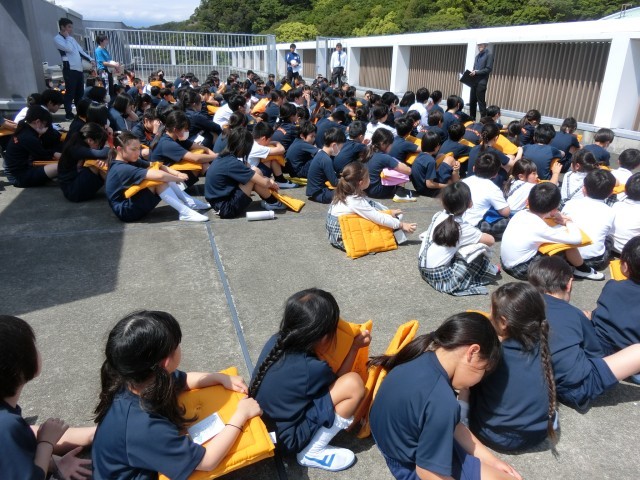 地震・津波・土砂災害を想定した避難訓練を行いました。まずは教室で、地震が起きたときにどのように身を守るかについて話を聞き、命を守るために大切な「お・か・し・も」の約束を確認しました。訓練では、子供たちが落ち着いて行動し、先生の指示をよく聞きながら、すばやく避難する姿が見られました。災害はいつ起こるかわかりません。今日の訓練で学んだことを忘れず、自分の命を自分で守る力をこれからも育んでいきたいと思います。