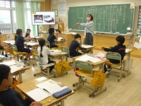 4Aの算数では、「グラフ」の学習のまとめをしていました。4年生では、「折れ線グラフ」の学習をしました。折れ線グラフはどのようなことを表すのに適したグラフなのかを答えたり、実際に表になっている数値を折れ線グラフに表したりしながら、まとめの問題に取り組みました。自信がないところは、友達同士確認しながら学習を進める姿もみられました。