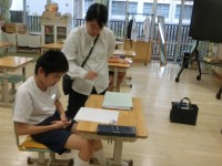 中cの作業学習では、かご作りが始まりました。昨年度は縦横にテープを織り込んでいましたが、今年は、斜めに織り込み、難しさを増していました。それでも、集中力を切らさず、丁寧に取り組んでいます。