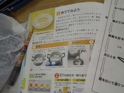 5A家庭 卵をゆでよう 卵を上手にゆでるための準備をしています。