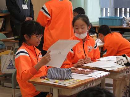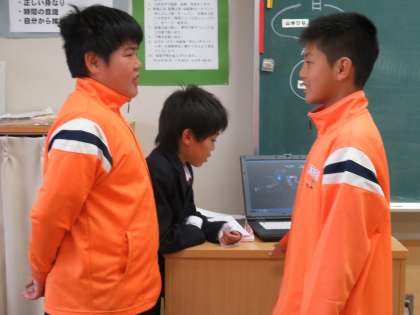 6A国語 1年生に学校を紹介しよう。リハーサルをしています。