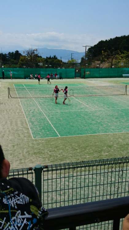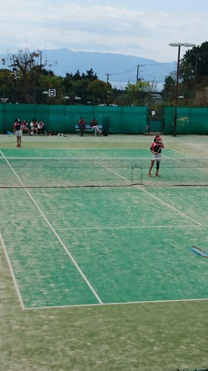 静浦小中テニス部は、二回戦(第四中)を行っています。第二セット佐藤・鈴木ペアが3-0で取りました。