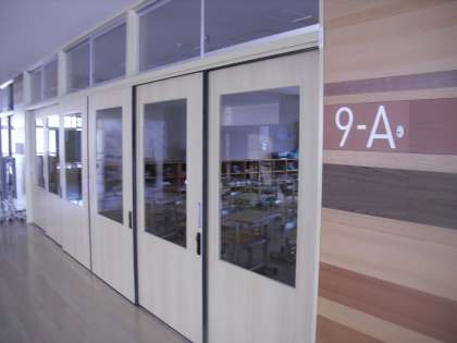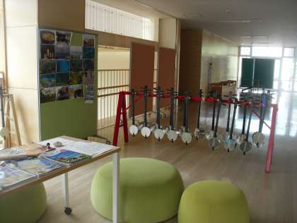 主のいない9A教室です。9A前のコモンスペースには、修学旅行事前学習の後が数多く見られます。