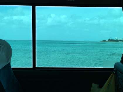 車窓から、海が見えてきました。