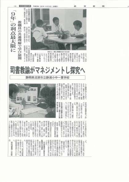 昨日発行の教育新聞「学校図書館特集」に本校の記事があります。小谷田教諭が執筆した本校紹介記事が掲載されました。
