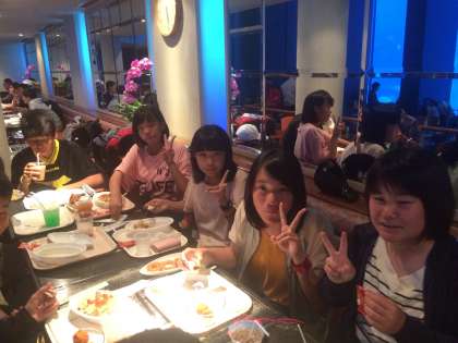 美ら海のジンベイザメの水槽前で、ディナーです。