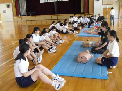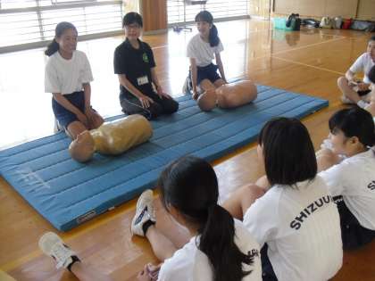 本日、7年生は沼津市救急ワークステーションスタッフの指導の下、普通救命法講習を実施しました。